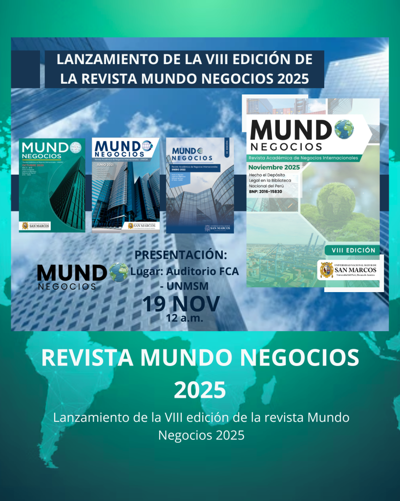 Esta octava edición 2025 presenta artículos elaborados por estudiantes de la carrera de negocios internacionales de la UNMSM, abordando los desafíos actuales y las nuevas tendencias en el ámbito empresarial y económico.
